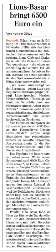 Artikel HAZ vom 12.11.25 Lions Basar 2025.PNG